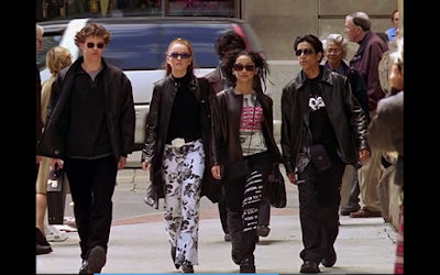 Lexy's cherry pants outfit is iconic and up there with the My Date with the President's Daughter dress. Other notable outfits include the entire gang's black trench coats/sunglasses/spy gear.